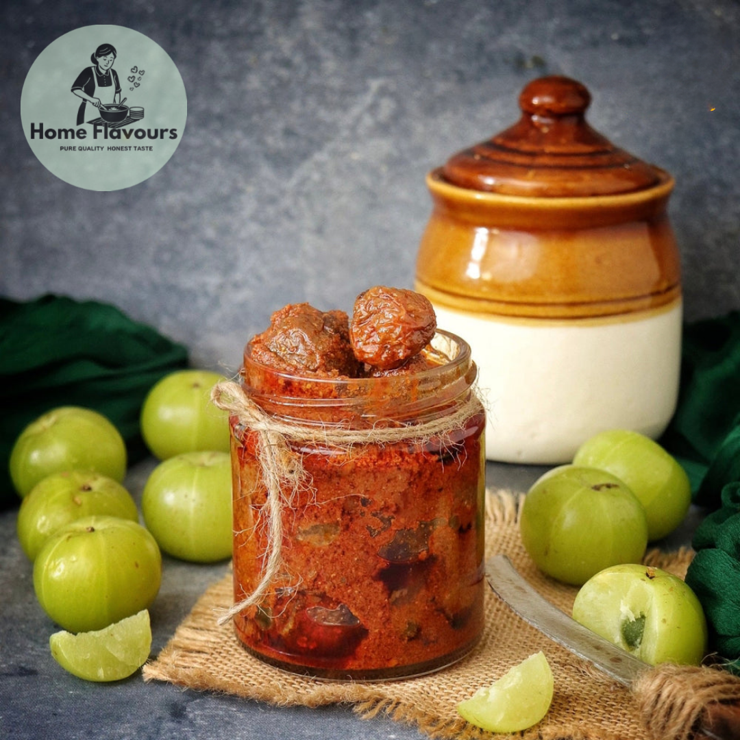 Get the best of both health and taste with our Amla Pickle. Made with fresh Indian gooseberries (Amla), blended with homemade spices and cold-pressed oils, this pickle is both tangy and nourishing.